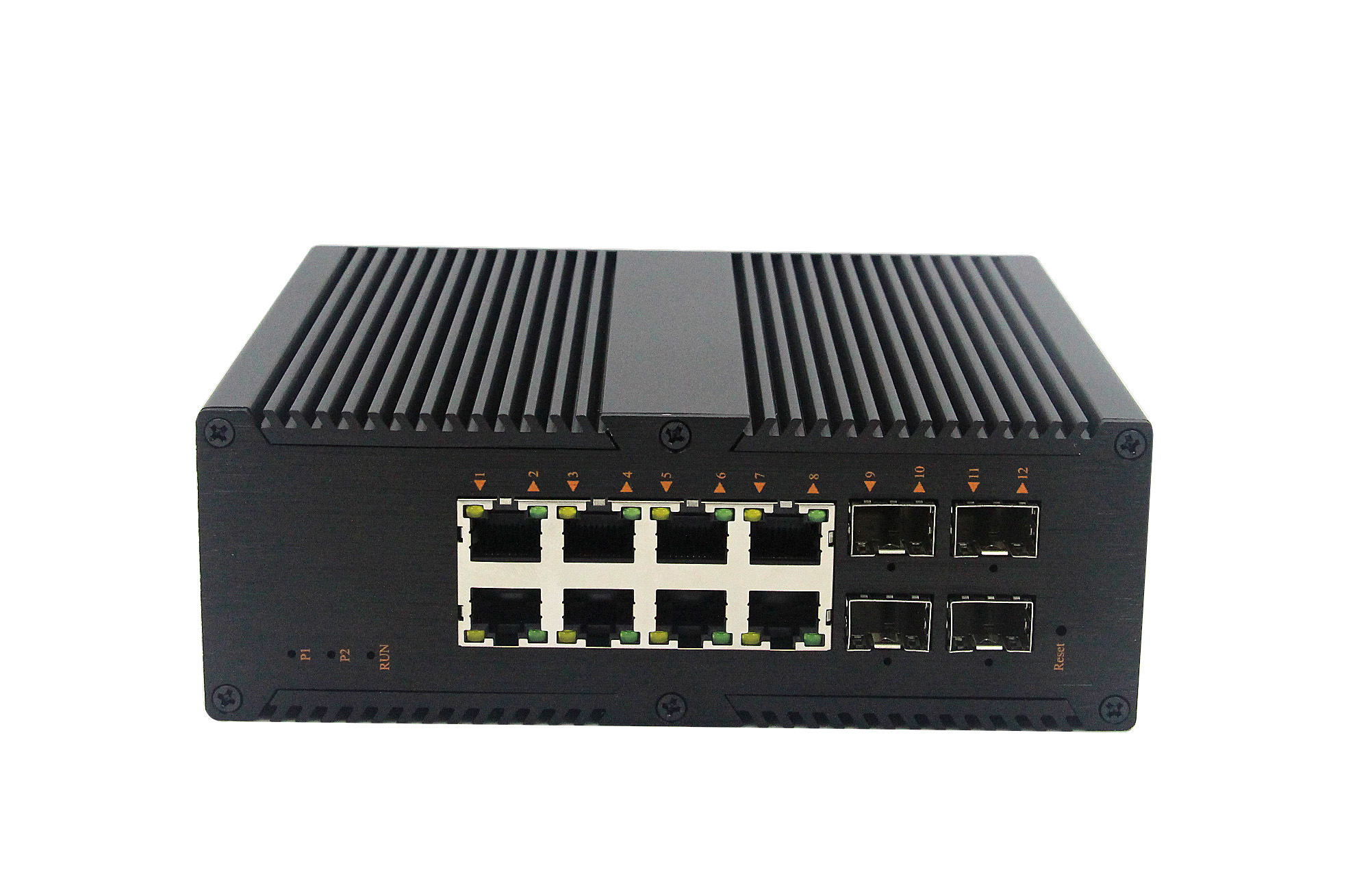 4個千兆光+8個千兆自適應電口、SFP接口、DC12-52V供電 |