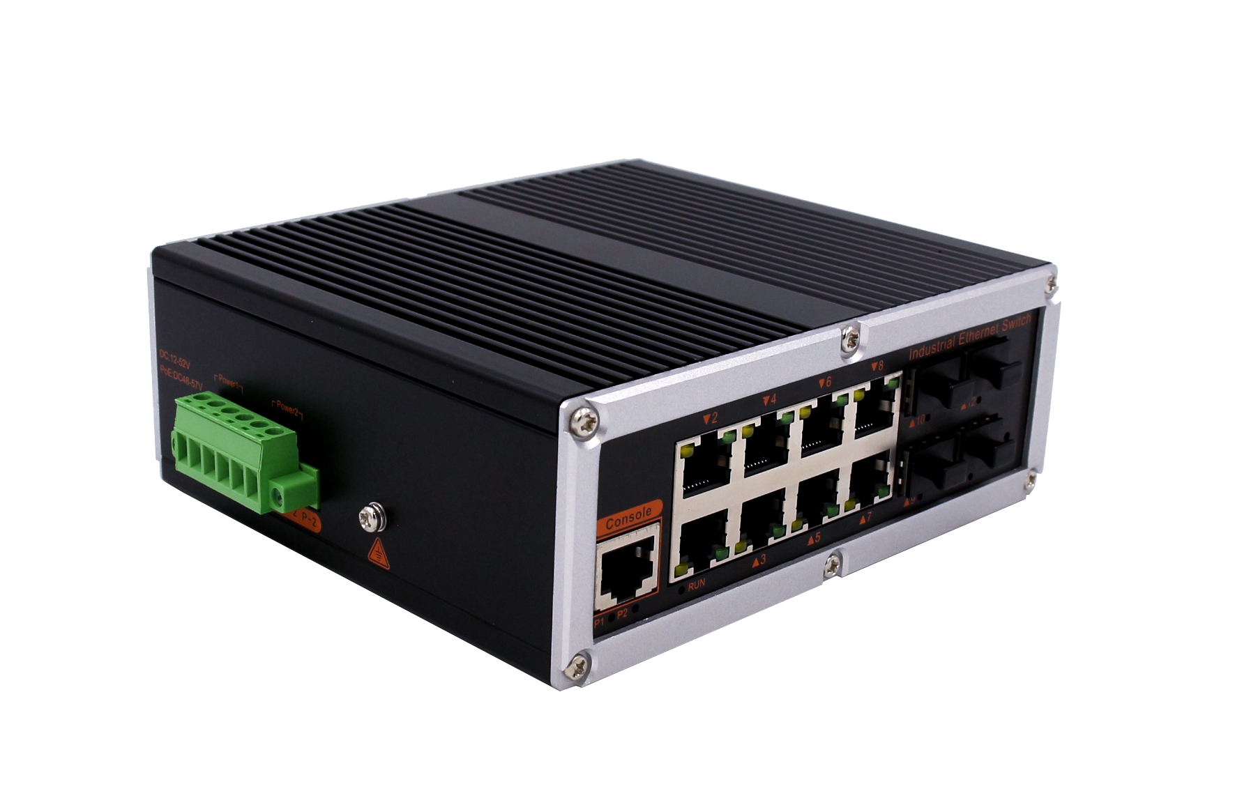 4個千兆光+8個千兆自適應電口、SFP接口、DC12-52V供電