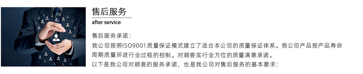 以上是我公司對顧客的服務承諾,也是全體市場營銷、售后服務人員的工作準則,懇請顧客監督實施。
