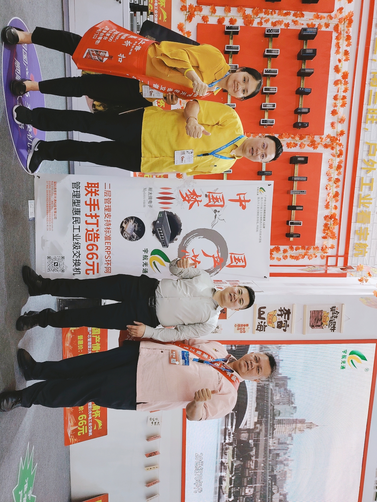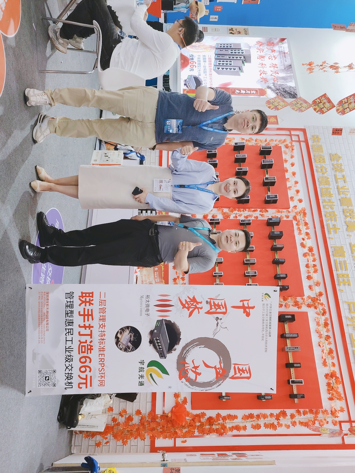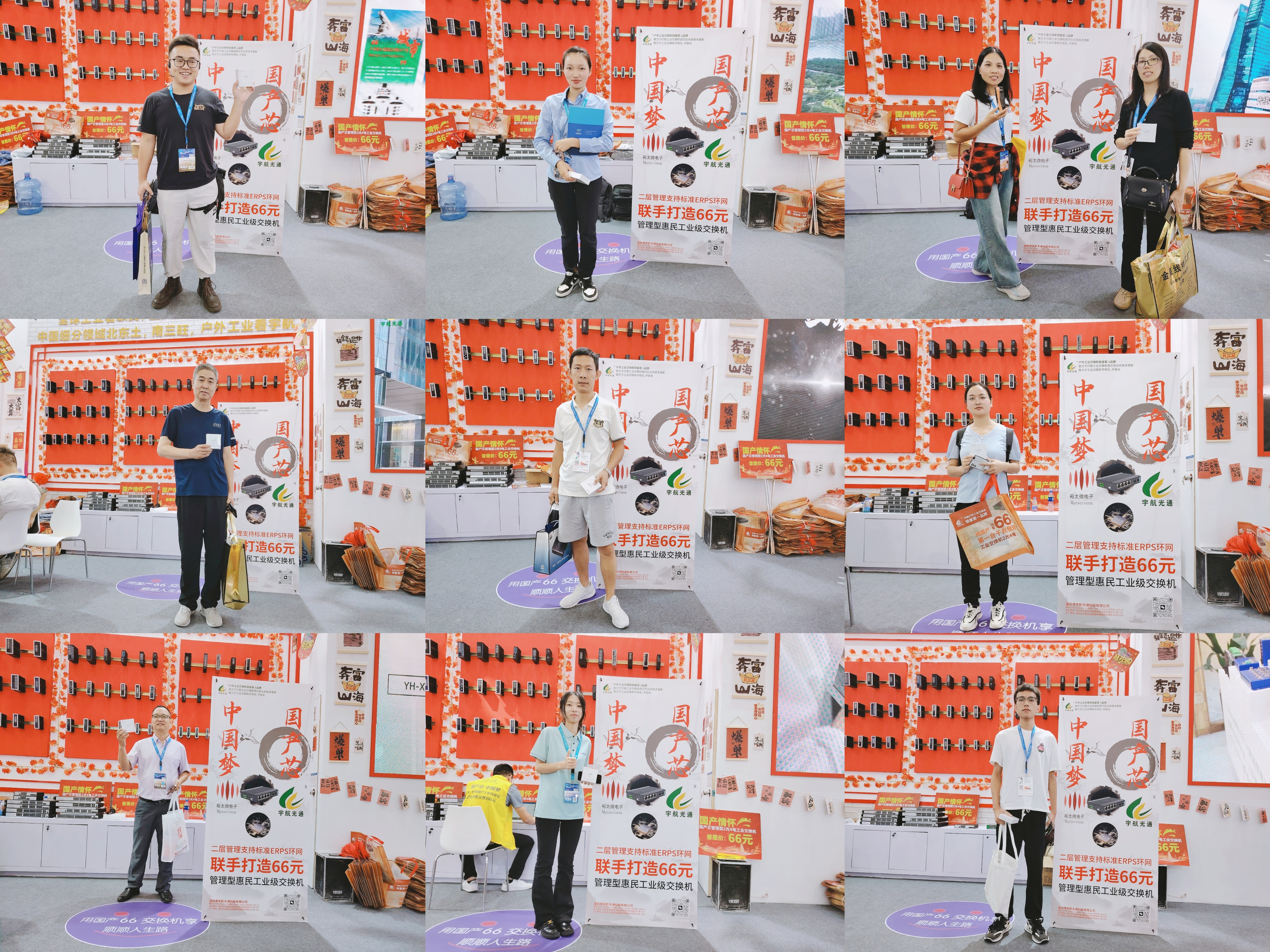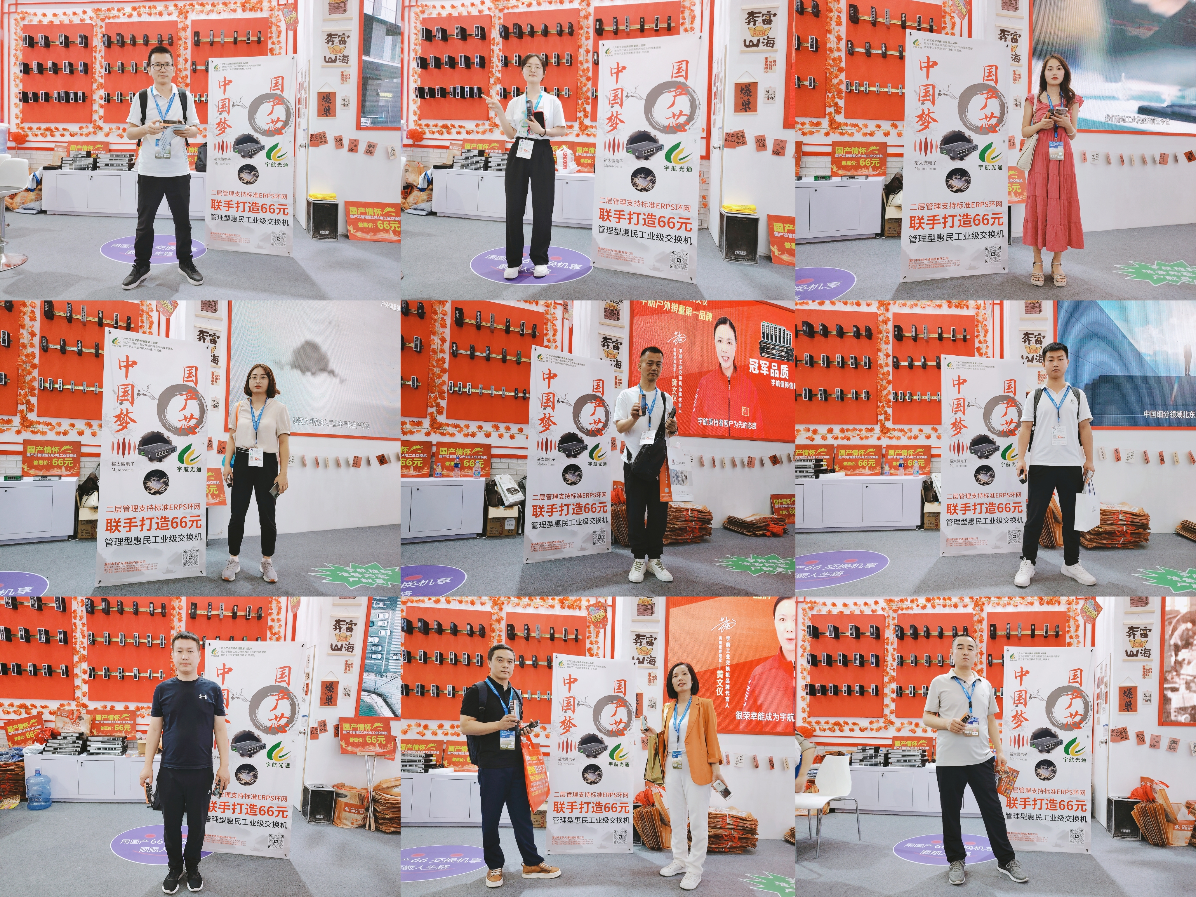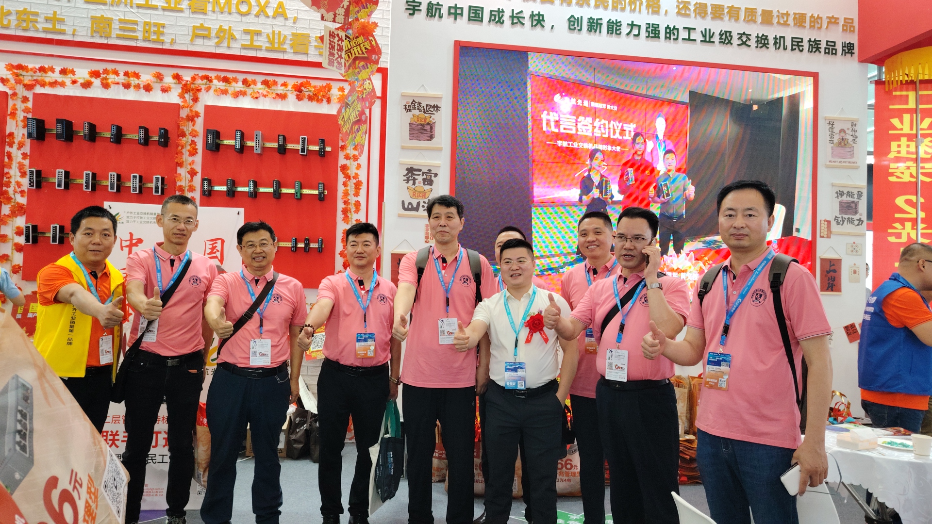宇航工業(yè)交換機(jī)劉總受邀參加CPSE安博會(huì)開幕式(第二排左二) 宇航是戶外工業(yè)銷量第一品牌,本次展會(huì)宇航順應(yīng)潮流,以中國(guó)紅為背景,結(jié)合當(dāng)前“00后”慣用的網(wǎng)絡(luò)流行語來打造展館,兩種元素相互碰撞,獨(dú)具匠心,整個(gè)展館充滿活力和年輕氣息,吸引了眾多嘉賓駐足觀看,前來打卡留念的觀眾絡(luò)繹不絕。