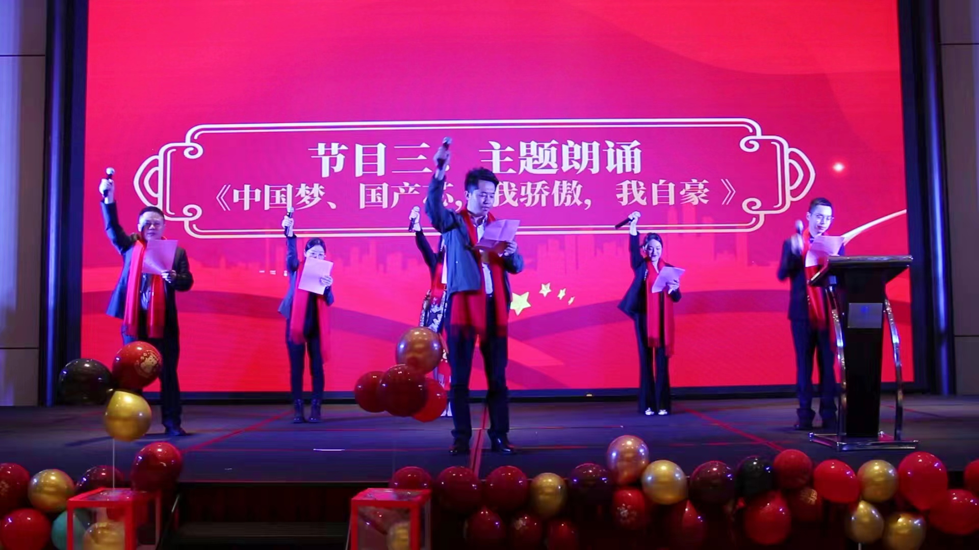 宇航工業交換機營銷副總張玉平帶領宇航的特戰隊員們,帶來了《中國夢、國產芯,我驕傲,我自豪》主題朗誦。他們鏗鏘有力的聲音回蕩在會場的每個角落,傳遞著對祖國的無限熱愛和對全國產工業交換機的自豪。隨著他們朗誦的深入,現場觀眾的情感也被逐漸點燃。那激昂的語調、飽滿的情感,讓整個會場沉浸在一片肅穆而激昂的氣氛中,掌聲、歡呼聲此起彼伏,大家都被這份深沉的愛國情懷所感染,心情隨之飛揚。