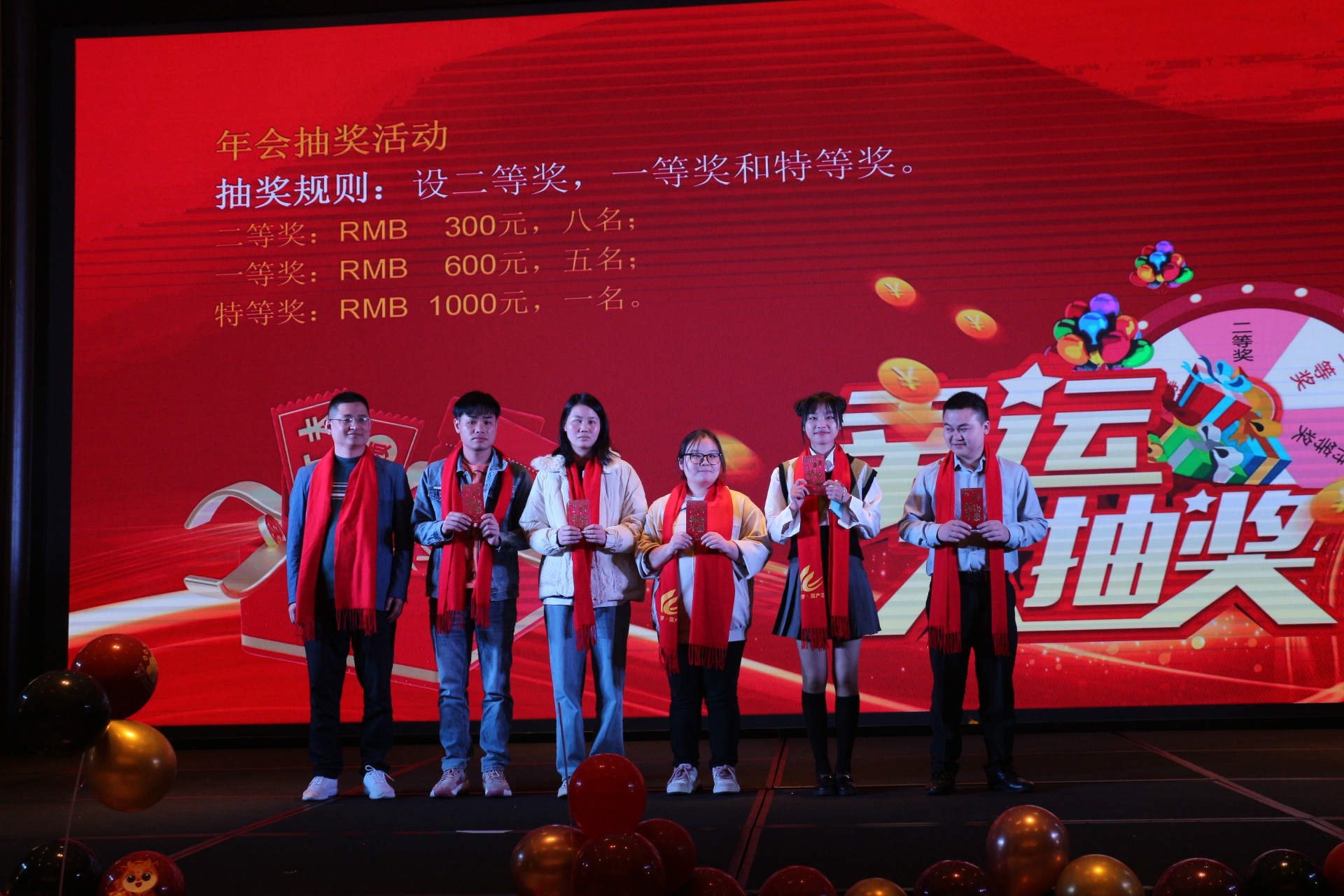 首先揭曉的是二等獎,RMB 300元,共有八名幸運兒。當主持人逐一念出他們的名字時,每一張面孔都綻放出燦爛的笑容,他們的喜悅之情溢于言表。緊接著是一等獎RMB 600元,五名同事欣喜若狂地沖上臺,他們的笑聲和歡呼聲點燃了整個現場。