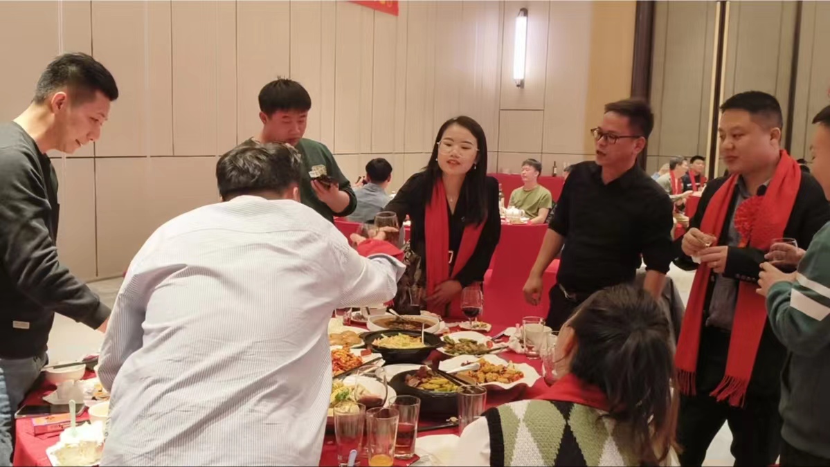 在所有環節結束之后,晚宴開始。大家圍坐一堂,品嘗著美味佳肴,暢談著過去一年的點點滴滴以及對未來的美好憧憬。整個餐桌上的氛圍溫馨而愉快,如同一個大家庭的團聚每個人都在盡情享受著這難得的團聚時光,彼此交流著心聲與感悟。