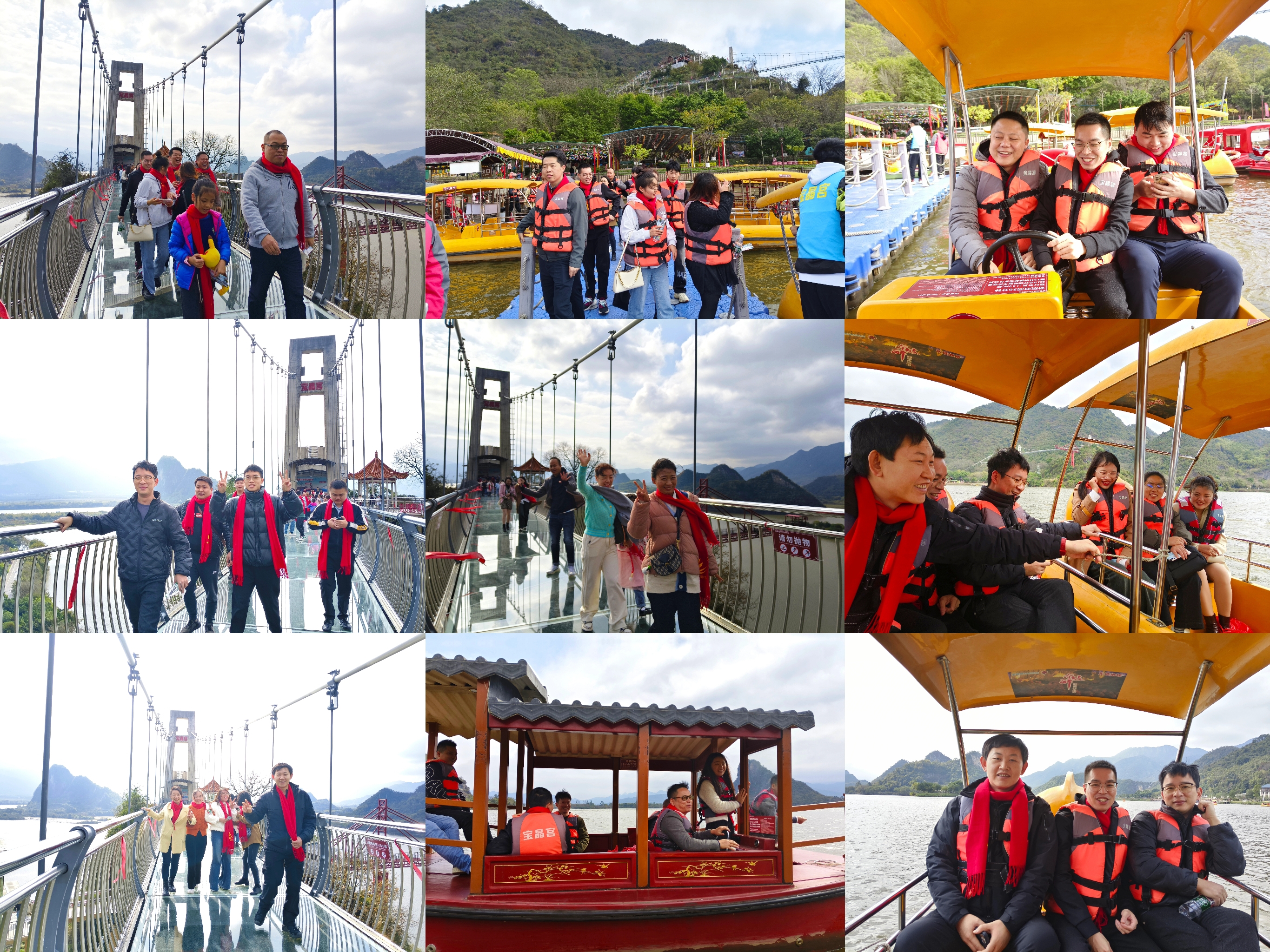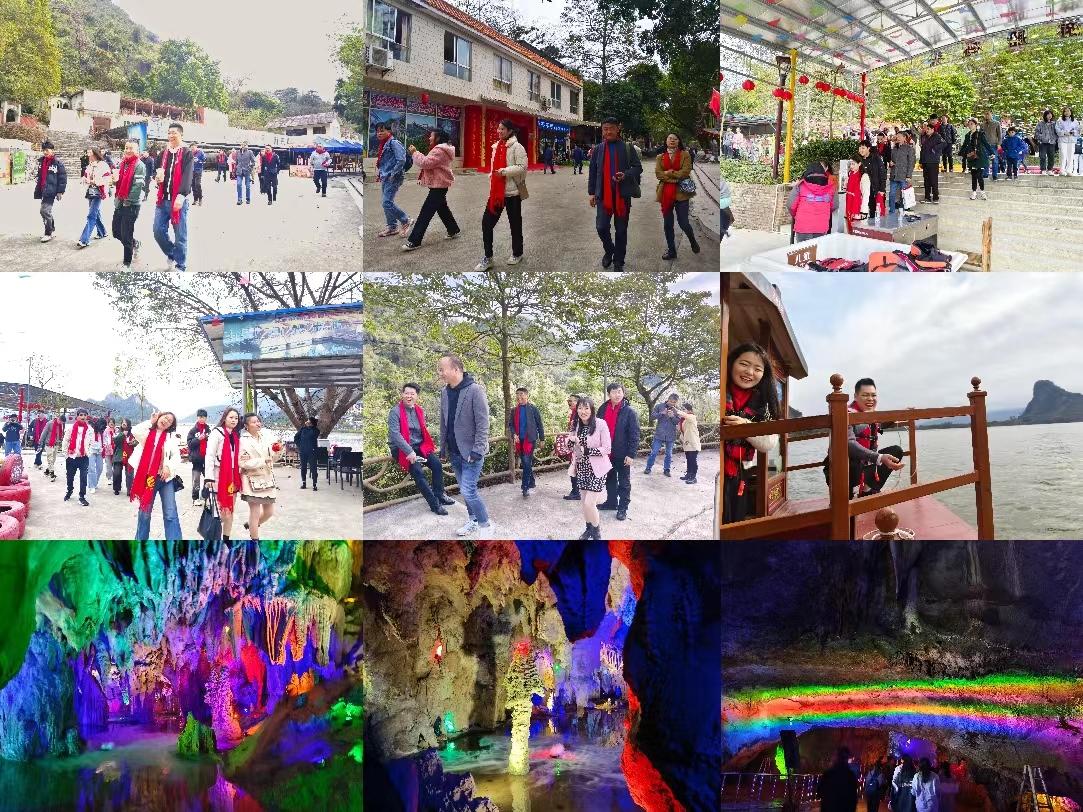 到達目的地后,首先挑戰了天宮玻璃橋。站在透明的橋面上,俯瞰腳下的山谷,確實令人膽戰心驚。但正是這樣的挑戰讓大家更加緊密地團結在一起,大家互相鼓勵、支持,甚至有恐高的同事也在大家的鼓勵下克服了恐懼,勇敢地走了過去。玻璃橋上留下了我們的歡聲笑語和勇敢的身影。隨后,我們來到了天鵝湖進行游船,欣賞著湖光山色,微風拂面,水波蕩漾,我們在這寧靜而美麗的環境中放松心情,感受大自然的魅力。最后,我們參觀了壯觀的溶洞,洞內石筍、石幔等形態各異,光怪陸離,大家驚嘆于大自然的鬼斧神工,紛紛拍照留念。在溶洞出口處,有一段不走回頭路的臺階,大家相互幫助、攜手并進,沒有一個人掉隊,每個人都成功走了過去。