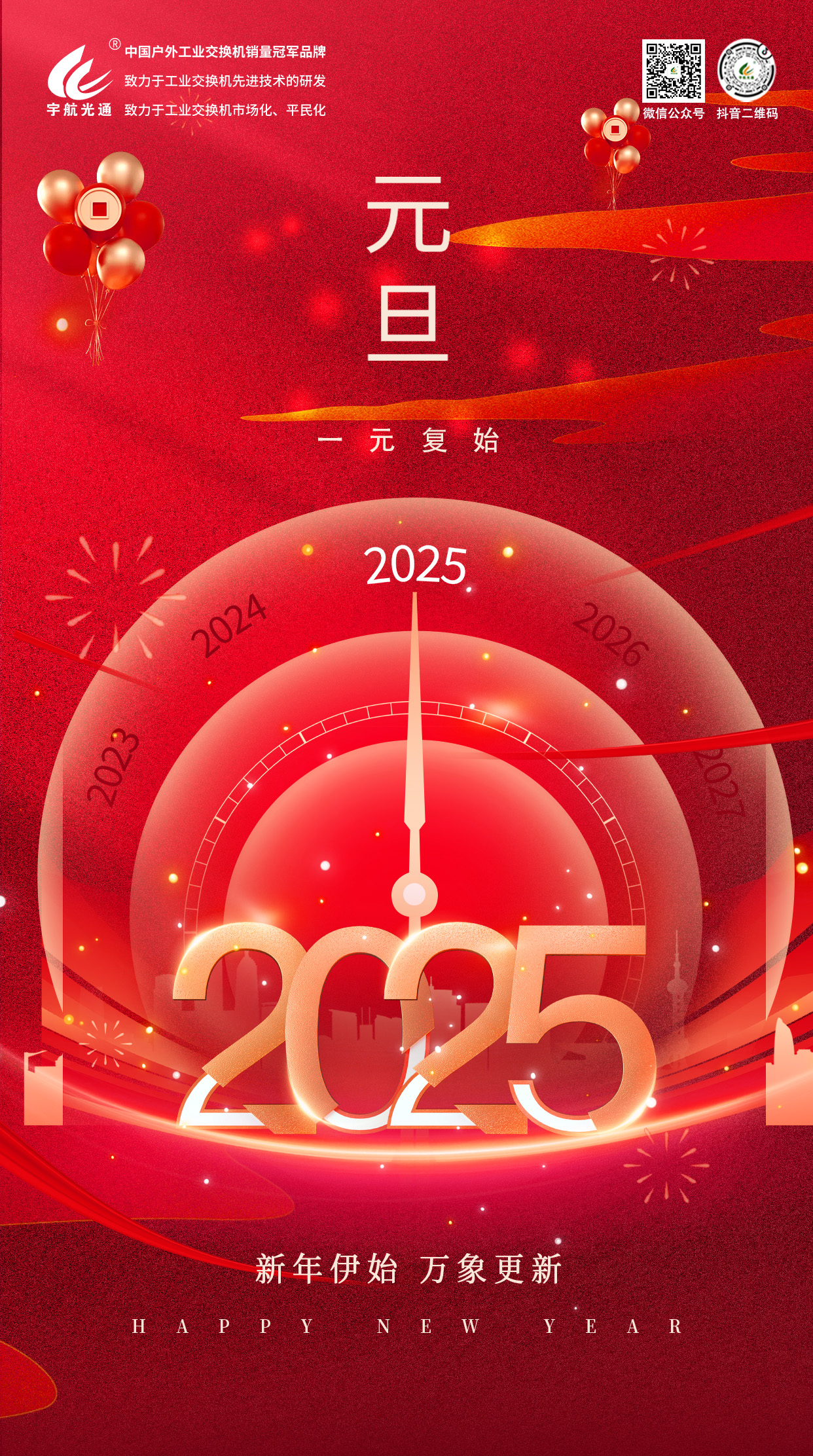 歲序更替,華章日新。闊別了充實(shí)而不尋常的2024年,我們迎來了充滿希望的2025年,值此新的一年到來之際,宇航工業(yè)交換機(jī)全體同事向社會(huì)各界領(lǐng)導(dǎo)、朋友們以及一直以來關(guān)心和支持我們的合作伙伴、供應(yīng)商表示最衷心的感謝!向辛勤付出的每一位同事致以最誠摯的敬意!